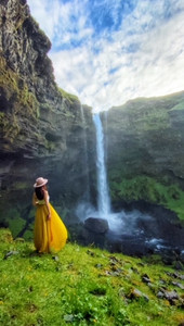 There was a secret waterfall next by called Gljúfrabúi. It is a hidden gems of the South Coast, and thus an excellent spot for photos. You will need to step on the stones to walk into the cave.